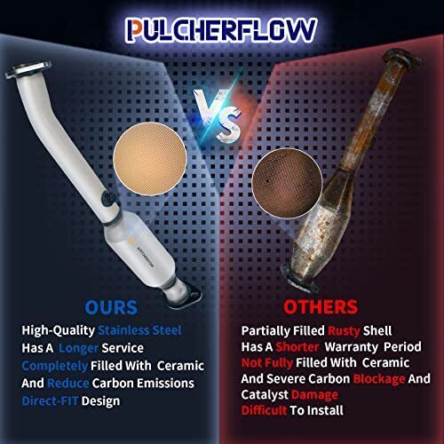 PULCHERFLOW Catalytic Converter High-Performance Better Flow, Better Performance (EPA Compliant). Premium substrate material and a high-technology washcoat ensure exceptional oxygen storage capacity while OE expertise delivers application-engineered parts, Made of high-quality stainless steel material, sturdy, durable, high temperature resistant, and durability durable catalyst material.